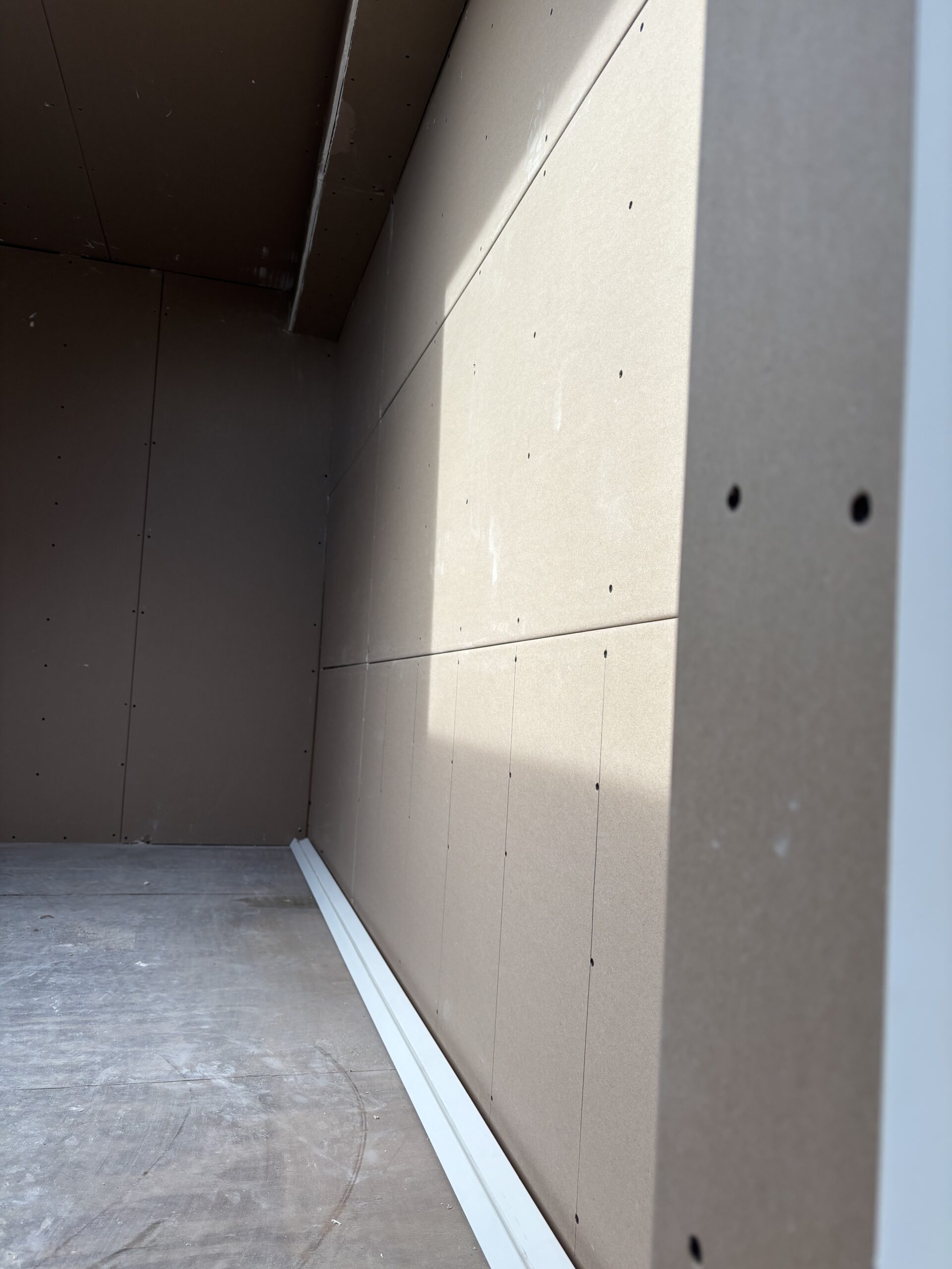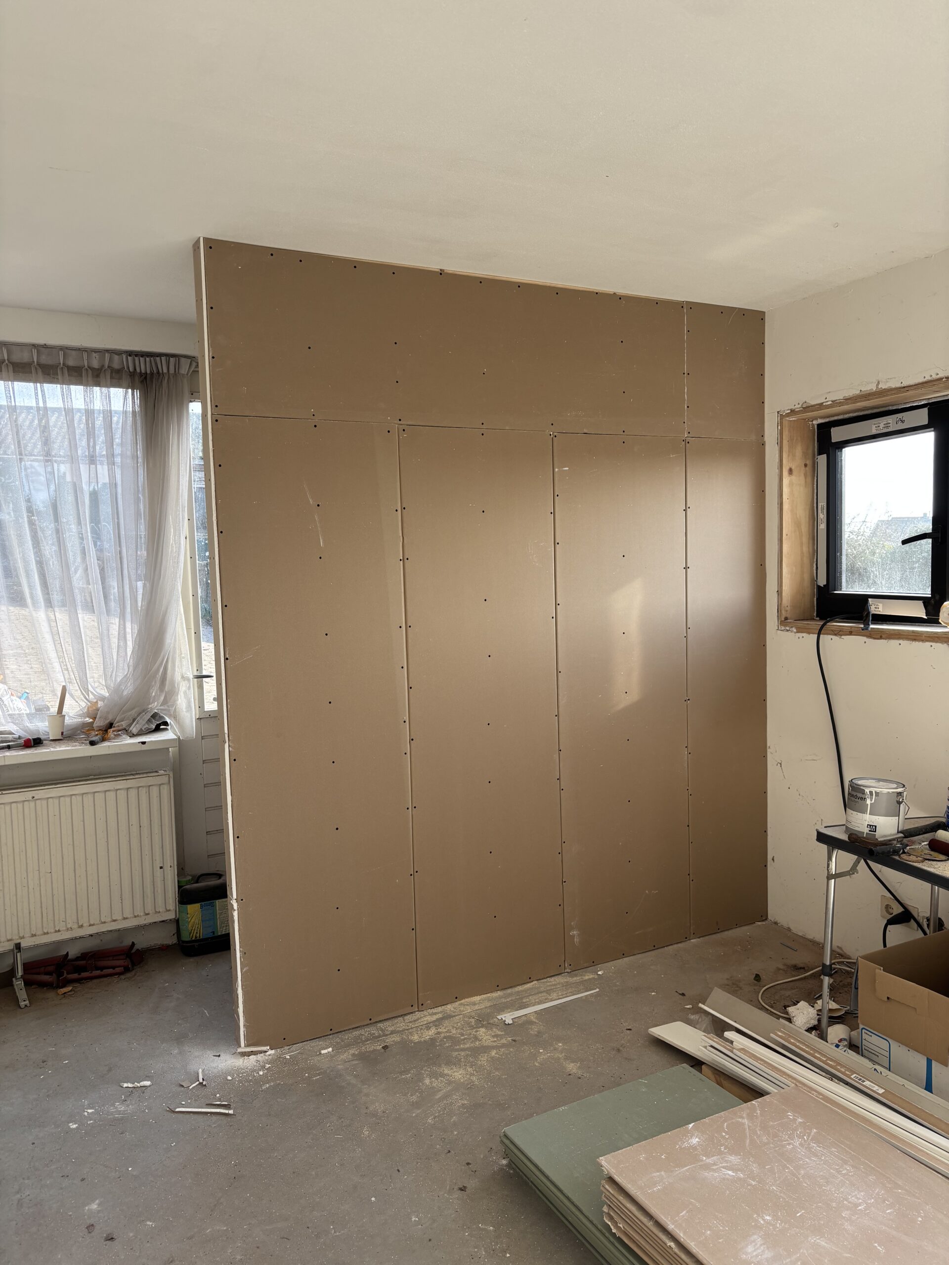Het realiseren want een simpele scheidingswand entree naar woonkamer, stuc-klaar.