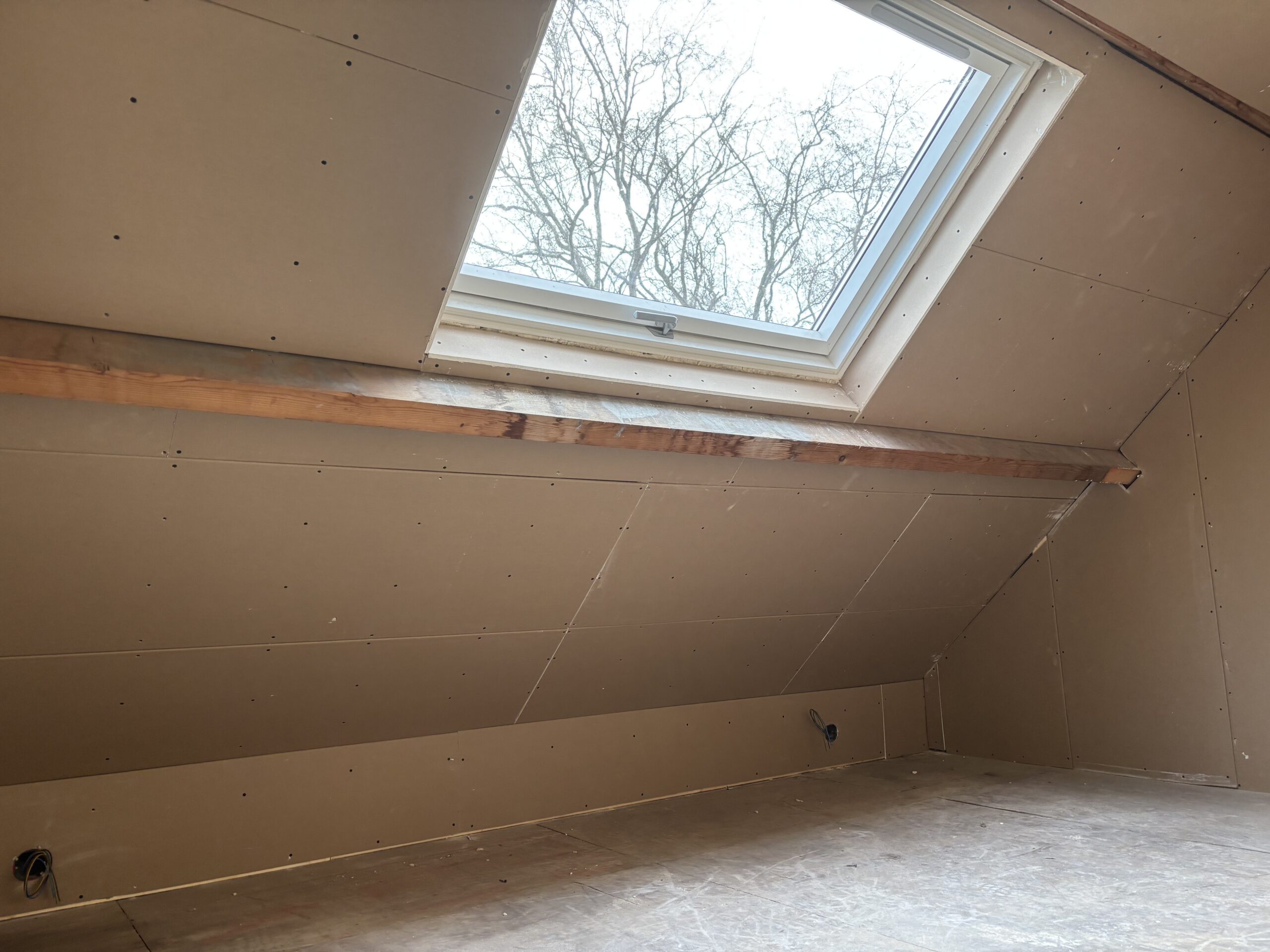 Voor een vaste klant in Nieuw Beijerland hebben wij en zolder ruimte mogen isoleren, aftimmeren met stucplaten en de laten stucen.